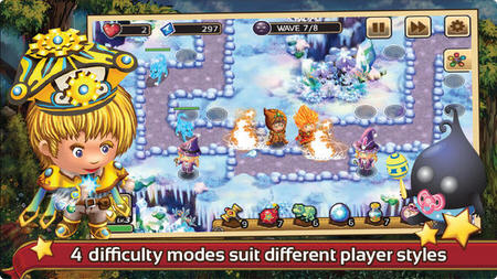 作为一款魔法策略塔防,艾尔多伦防御将魔法元素发挥的很不错,火、冰、土、暗、木和能量这6种不同属性的学徒可以供你选择,但是画面场景不是太开阔,显得有些小气,还好在操作方面很是流畅,玩家很容易上手。