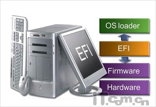 EFI的英文全称是Extensible Firmware Interface,中文名是可扩展固件接口,早在2006年的上半年,Intel曾经在IDF上进行过EFI的演示。要使用EFI系统,必须主板和操作系统都支持EFI功能,目前支持EFI功能的操作系统有Mac OS X、Vista和Server 2003。